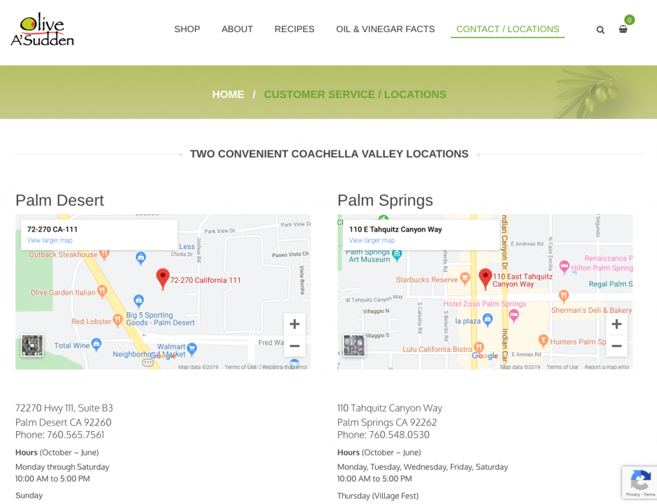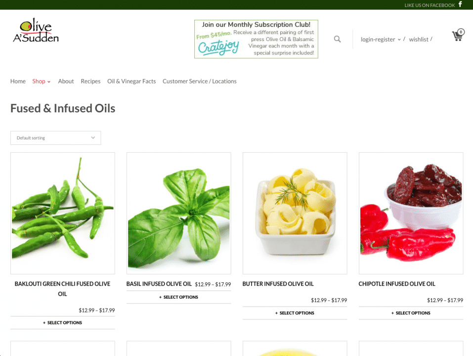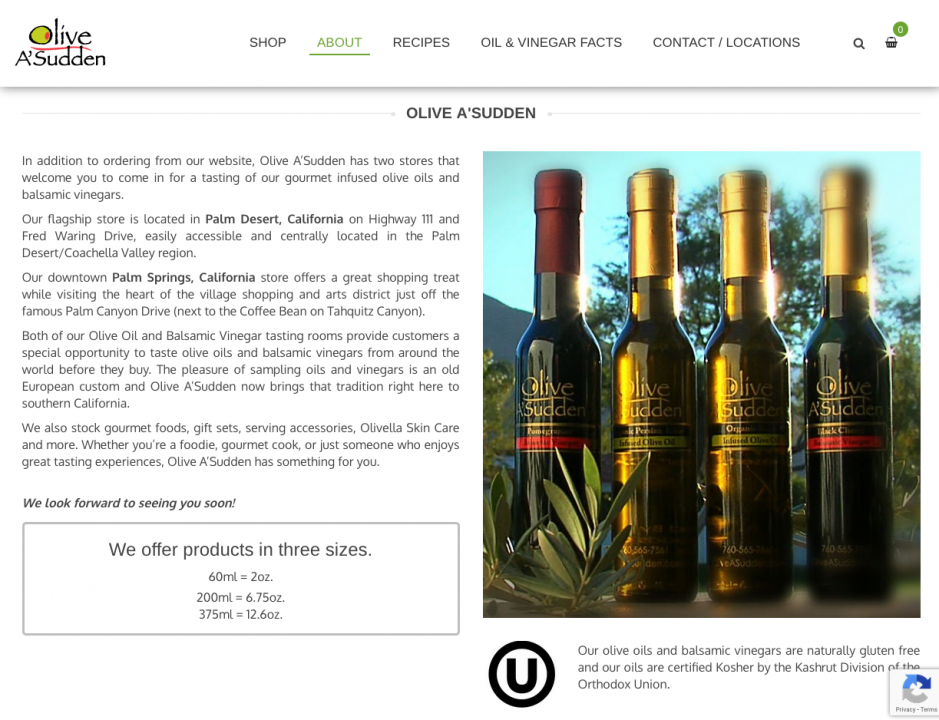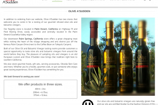 In addition to ordering from our website, Olive A’Sudden has two stores that welcome you to come in for a tasting of our gourmet infused olive oils and balsamic vinegars.